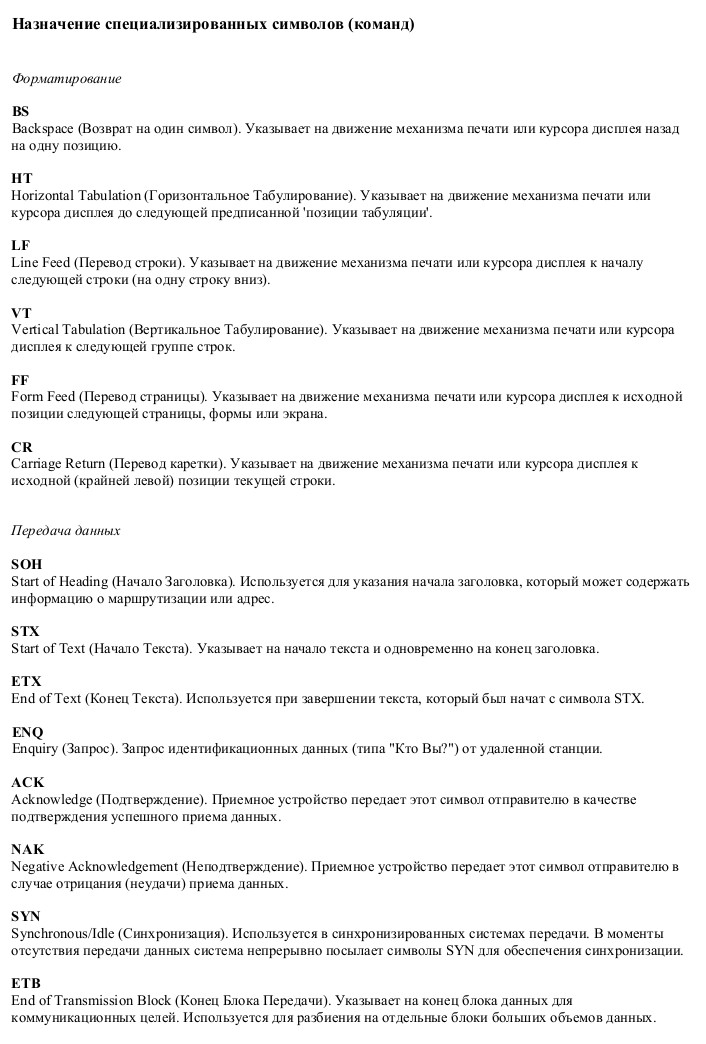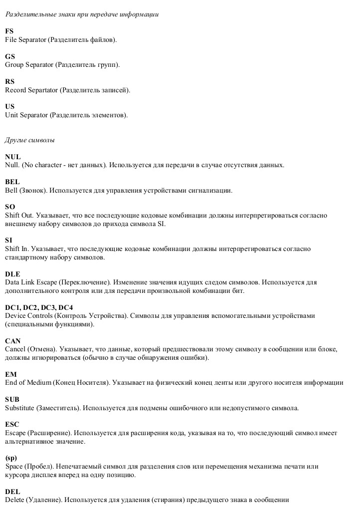 Таблица символов ASCII